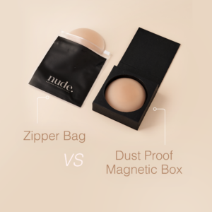 Our original nipple covers use medical grade glue to stick onto your breast. The glue is sweatproof and waterproof and can be used up to 30 times. It’s our best selling item since day 1. No glue nipple covers are an alternative option for those with extra sensitive skin. The covers use applied pressure and body temperature to stick on your breast. It’s also a good choice to use with sport bras with no pads.